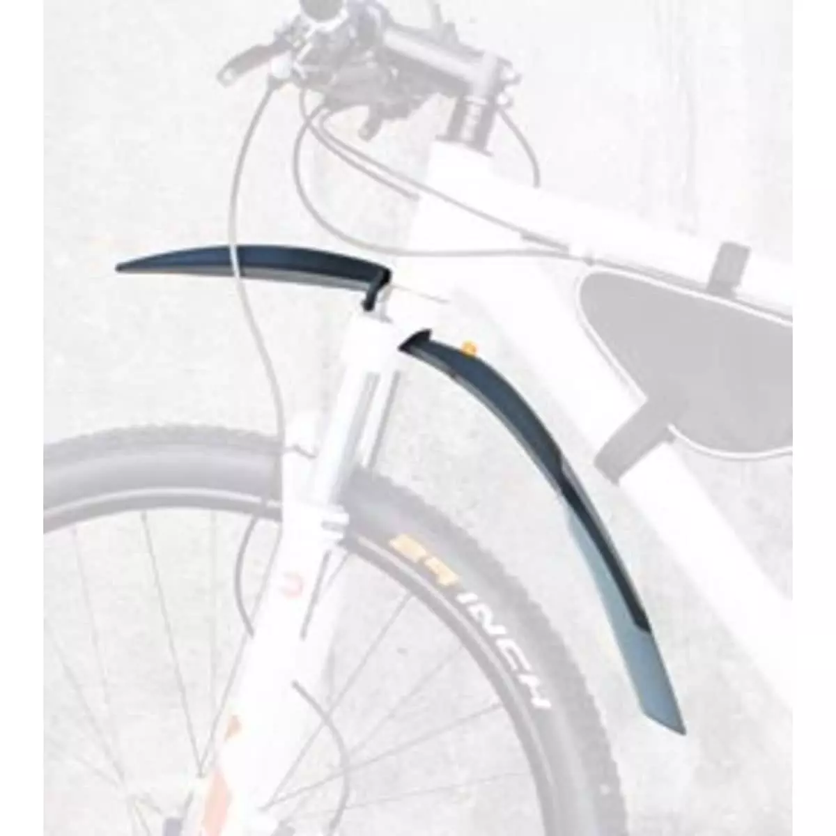 High-quality 2-component front fender that attaches to the fork of mountain and trekking bikes. The clamping cone disappears almost invisibly into the steerer tube.